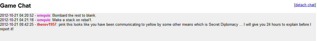 Comments: rather peculiar that out of the blue he made these comments with no other chat from other players...it seems as other he has been communicating by means other than chat...I gave him 24 hours to explain the situation...but heard no reply back