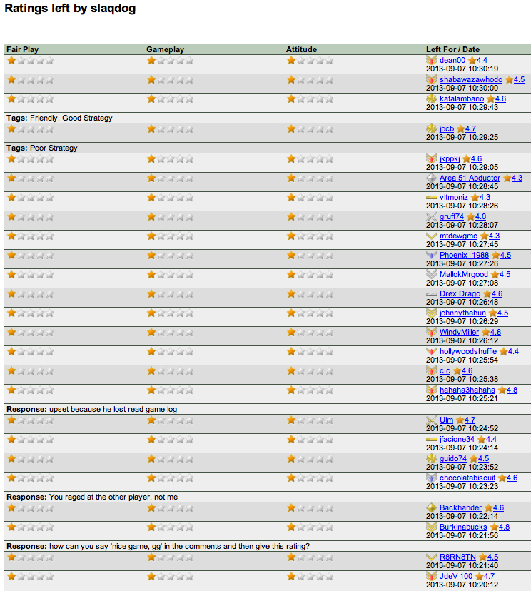 If it's justified by their play/attitude etc, then fine. It's when someone rates 1 star just because the other guy beat them that it becomes abuse; or saying 'rude' when nothing was said, or 'deadbeat' when they didn't miss a turn.