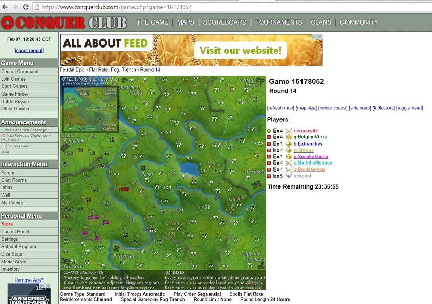 Regarding secret diplomacy, I categorically deny ever conducting secret diplomacy in any game on CC. As MagnusGreeol points out the game log clearly shows I had taken a territory from mosul prior to SneakySheep's comment. As I mentioned in the game it was easy for him to deduce that I intended to attack mosul, which was in fact the case.