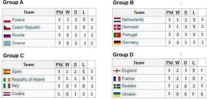 Game format will be as for the Euro 2012: 4 groups of 4 will play a league style with the first 2 in each group going through to a knock-out phase.