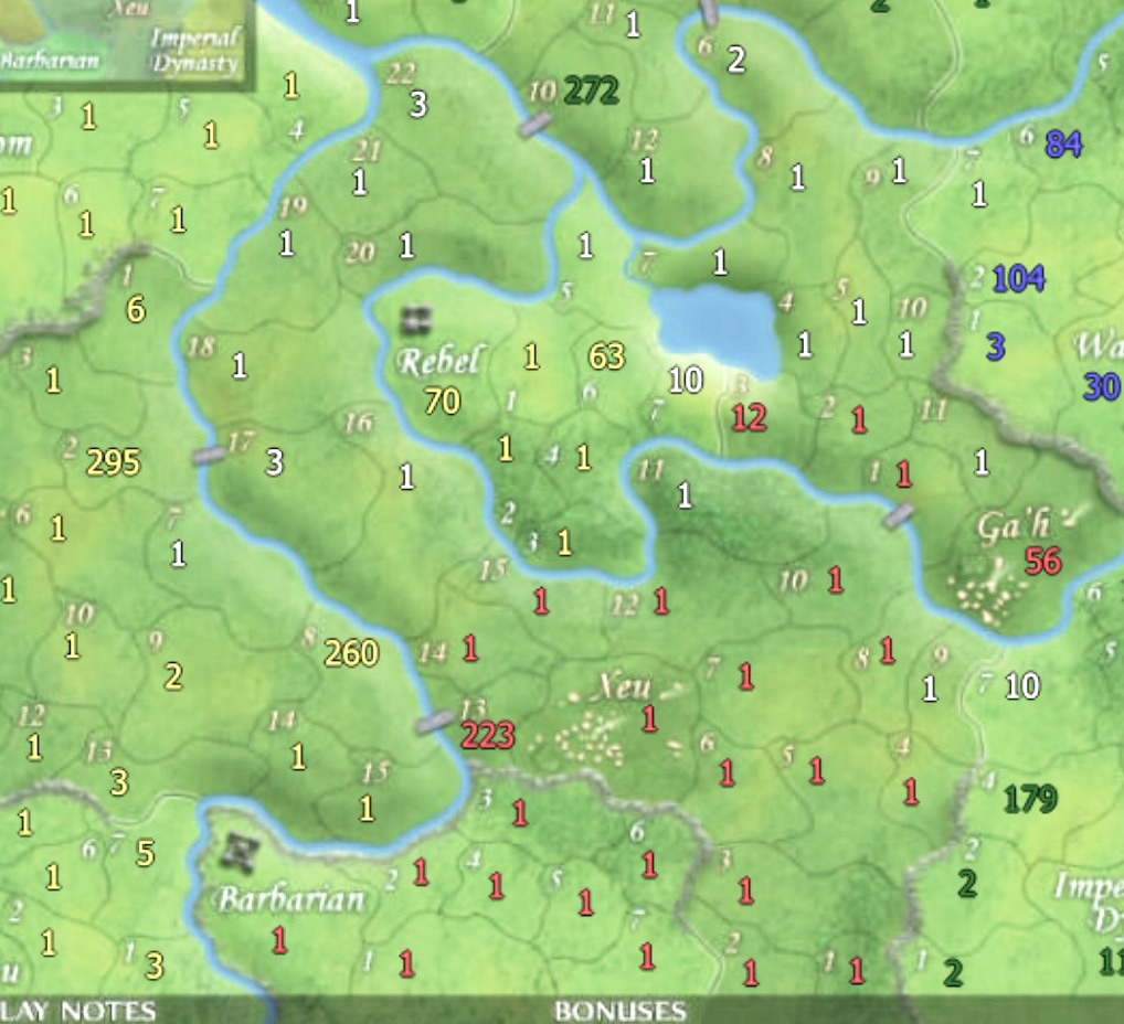 Green ( winner ) : 3 castles 1 villages