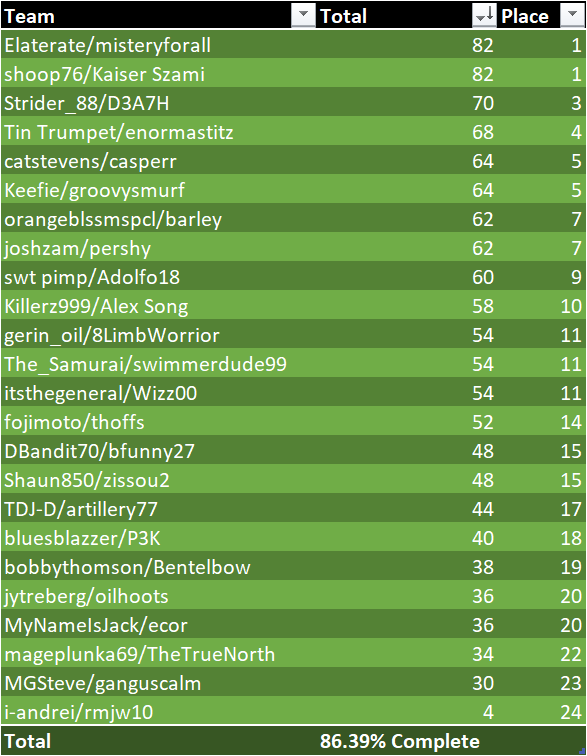 Thanks for your patience and good luck everyone.... Updated Scores will be posted later today or tomorrow