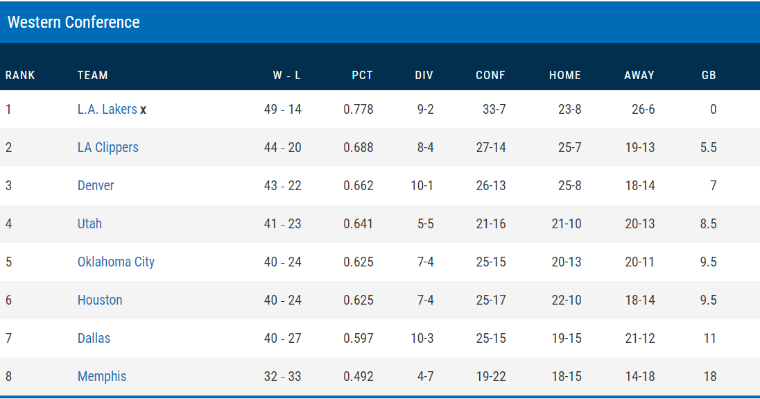 Current standings and playoff picture as of the shut down on March 11th are included below for reference.